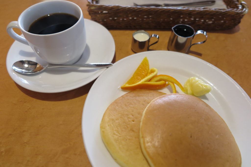 モーニングメニューが頼める時間帯だったので、パンケーキセットを注文。