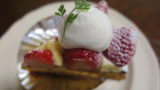 名物の一つ、プリンローヤル。いわゆるプリン・ア・ラ・モード。プリンが埋もれてしまうぐらいのたっぷりのフルーツとアイスクリーム、そしてホイップクリーム。フルーツはあっさり目。しっかり冷やしてあります。